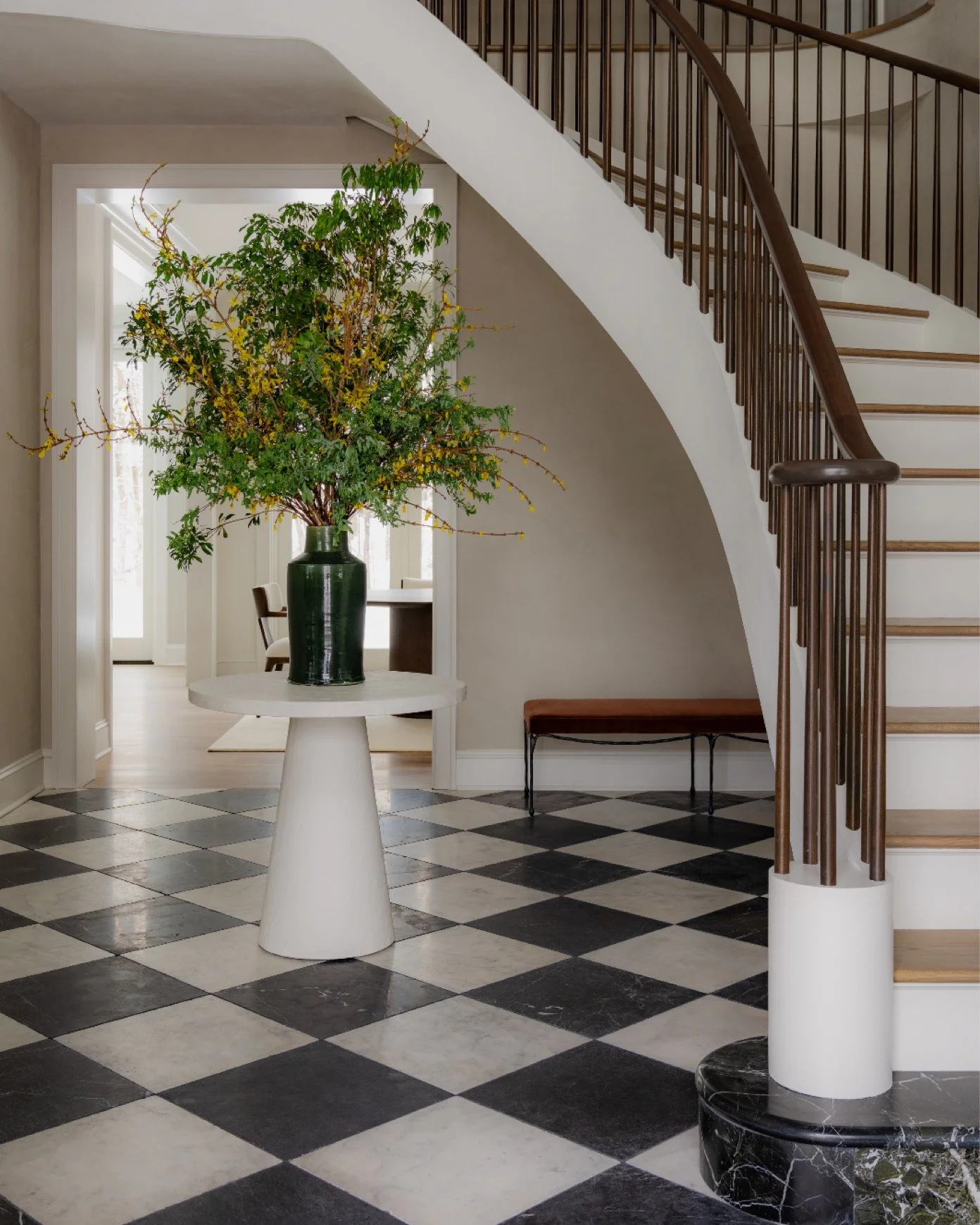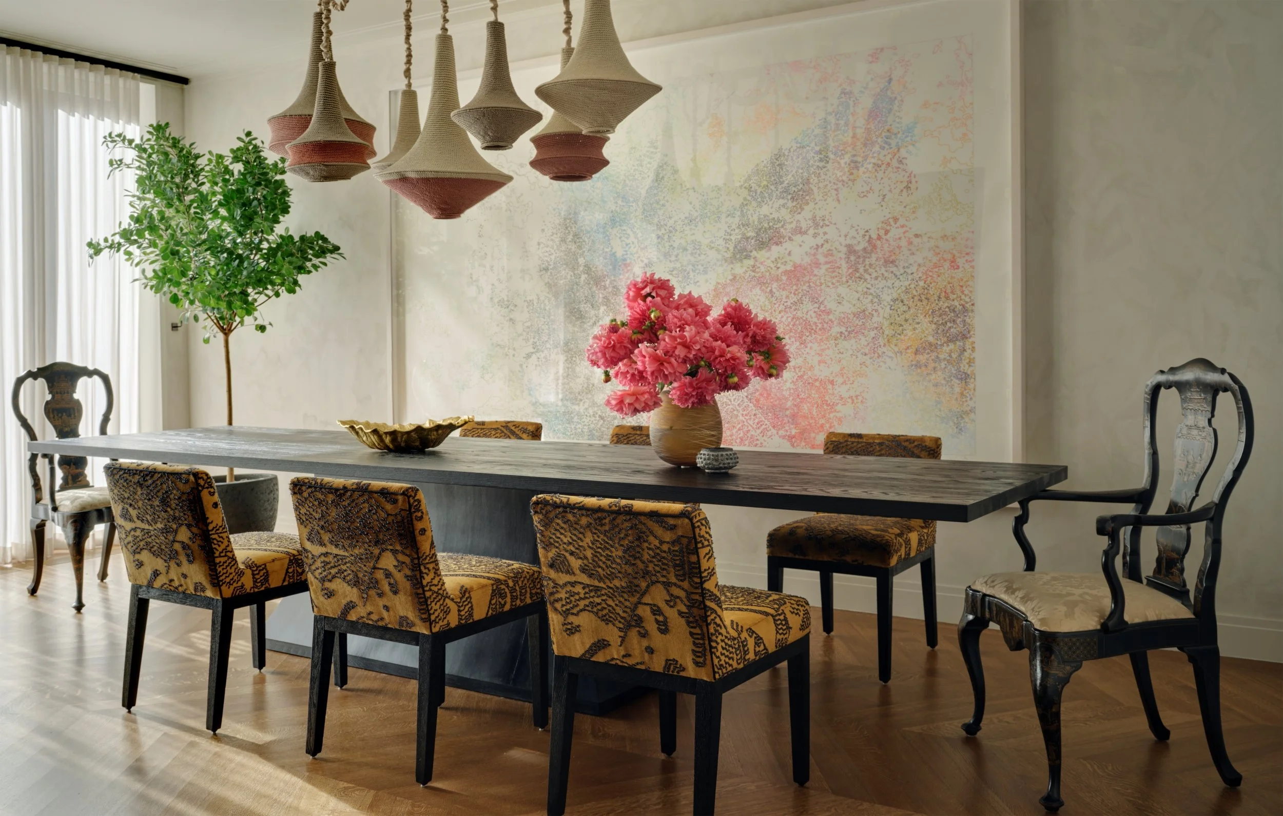 This five-story Manhattan townhouse was transformed into a layered, character-filled home that blends Southern charm and New York refinement. Drawing on the client's love of nuanced color, natural textures, and global influence, the design pairs raffia, textured wall finishes, and rich textiles with custom furniture and sculptural details. From a statement-making burgundy wet bar to a serene primary suite, each floor was thoughtfully designed for beauty, function, and family life.